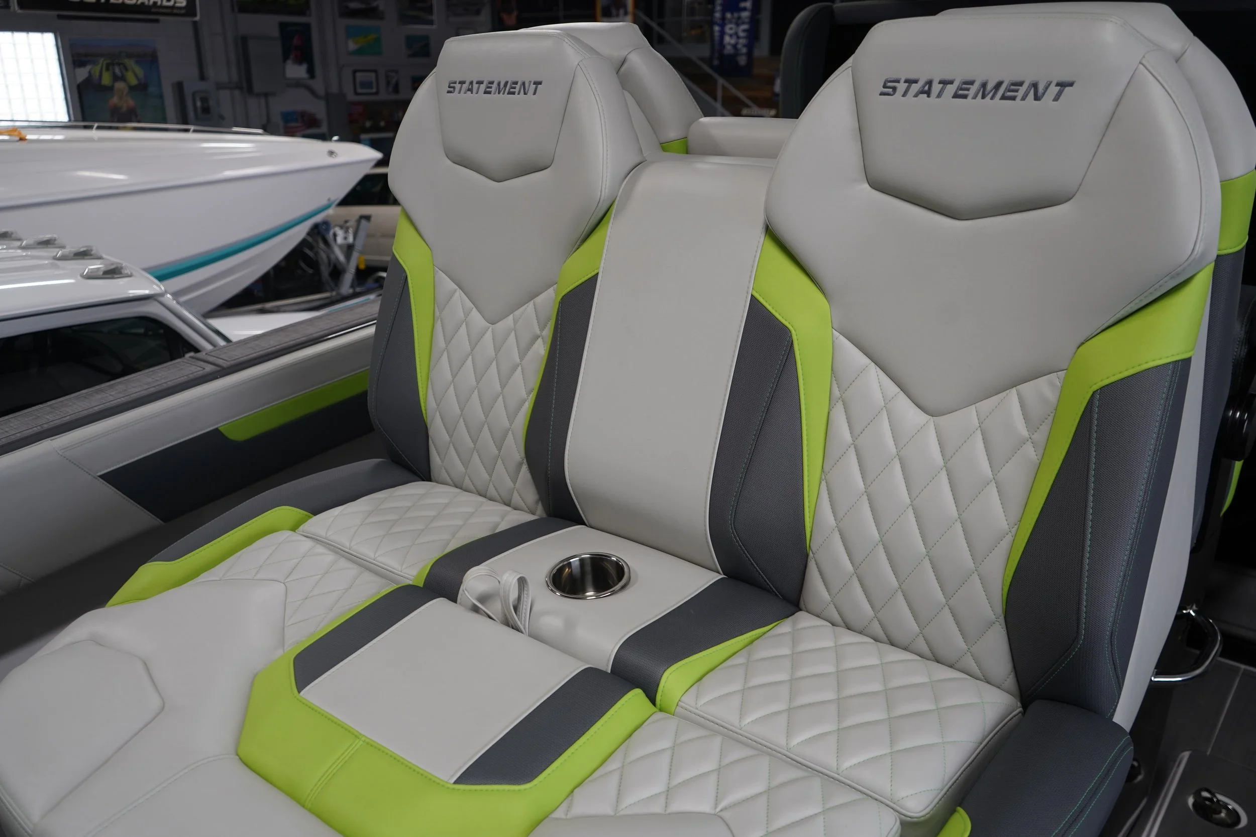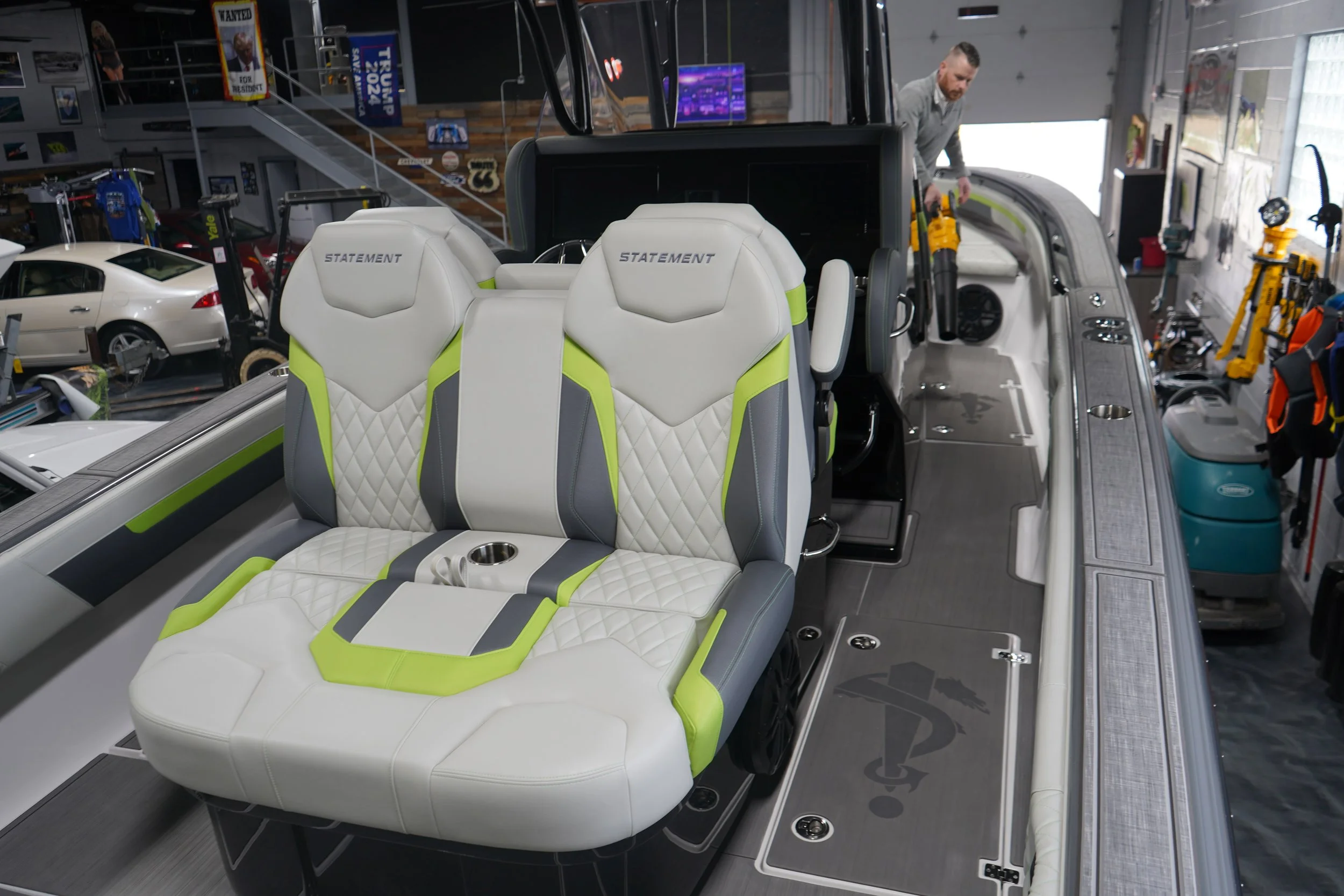 Versatile and adventure-ready, the 350 Open feels just as natural on a quiet mountain lake as she does making a run to the Bahamas. With Statement’s endless customization options, you can tailor every detail to match your boating lifestyle.